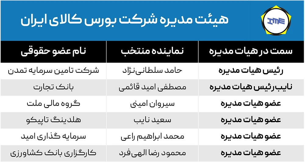 بورس کالای ایران که با سرمایه‌ای بالغ بر ۲.۹ هزار میلیارد تومان در بازار اول بورس تهران حضور دارد، از تغییر در ترکیب اعضای هیات‌مدیره خود خبر داد.